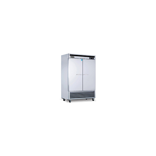Kool-It Refrigerator, reach-in, two section, 44.7 cu.ft., 53-9/10″W x 31″D x 82-7/10″H, (2) solid stainless steel door with lock, open door alert, digital temperature display, stainless steel interior, (6) adjustable shelves, accommodates full-size sheet pans, stainless steel exterior, bottom mounted self-contained refrigeration, 4″ casters (2) front braked, 3/4 HP, 10.9 amps, 115v/60/1-ph, ETL-Sanitation, cETLus,, ENERGY STAR